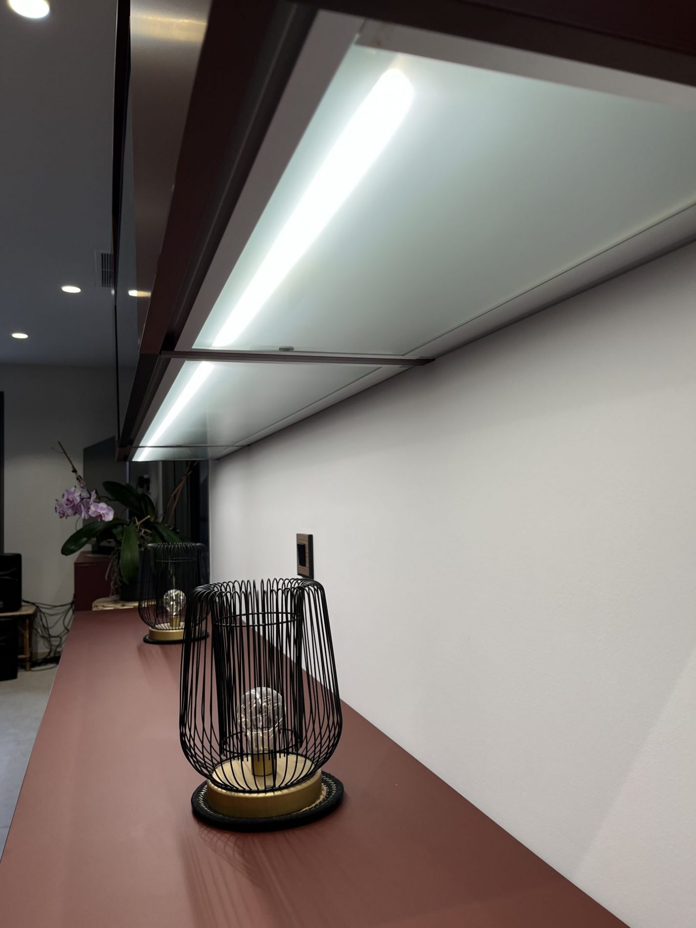 Un superbe éclairage pour l’intérieur du meuble et le plan de travail.